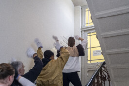 [2] This durability is often linked to visual representations. But, what experience remains once the document has decomposed? What do we learn when we devote ourselves to the microbiological traces of performative acts? Is the archive then everywhere? A body, pushed into a corner of the former gallery weisser elefant, appears as a glitch of an outdated file version and tells of discontinuity and deterioration. The performance A shock to permanence (2024) outlines the detours and cracks in process-based working methods and explores the relationship between loss and inscription in performative practices.